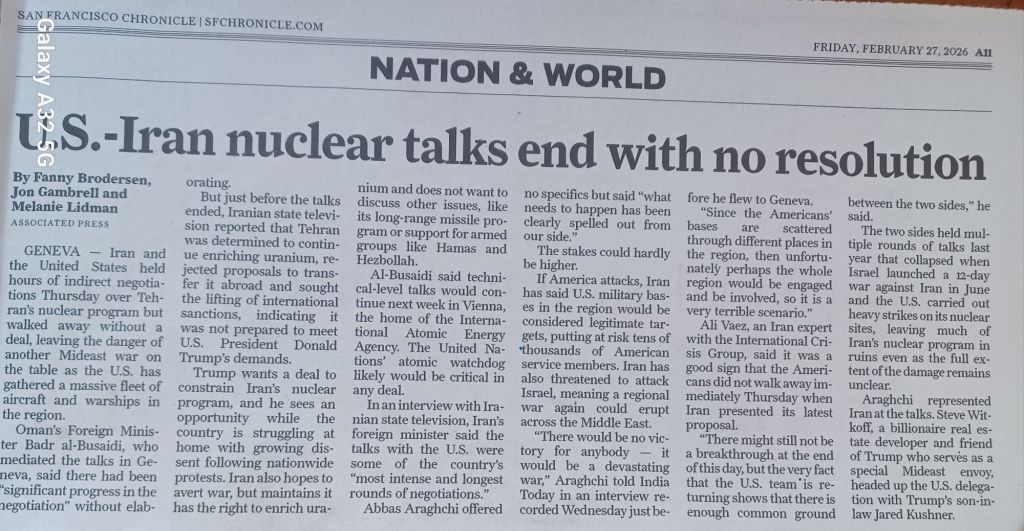 Trump’s devastation in IranThere was a “Resolution.” Trump’s unilateral Declaration of War – San Francisco Chronicle 2.27.2026