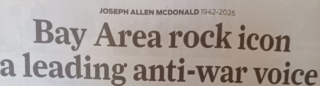 The blogger is well aware that Country Joe McDonald’s most well traveled song ‘I Feel Like I’m Fixin’ to Die Rag’ became a people’s anthem of the anti-Vietnam War movement.