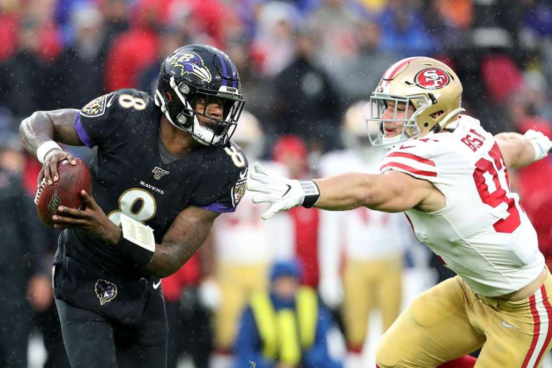 Speaking Monday morning on KNBR’s “Murph and Mac” morning show, Ryan said, “He’s really good at that fake, Lamar Jackson, but when you consider his dark skin color with a dark football with a dark uniform, you could not see that thing. I mean, you literally could not see when he was in and out of the mesh point…”