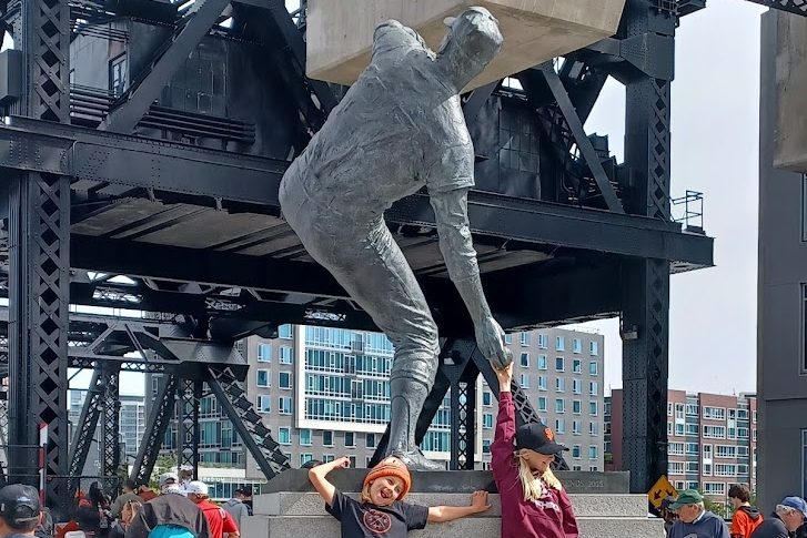 Top photo – Statue of Willie Mays in front of Willie Mays Plaza at Oracle Park – Third and King Streets – San Francisco