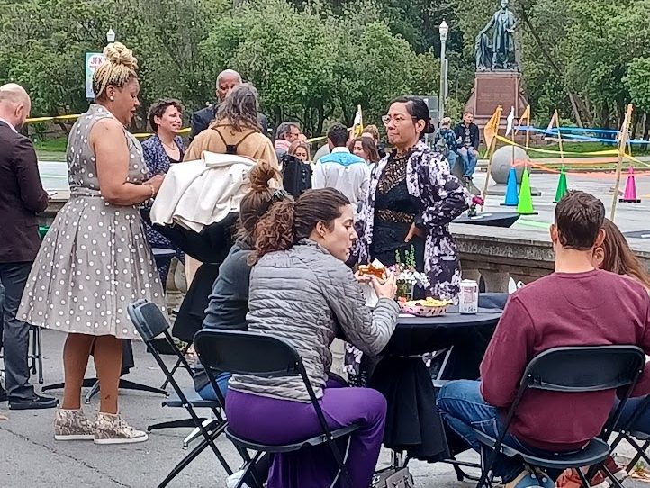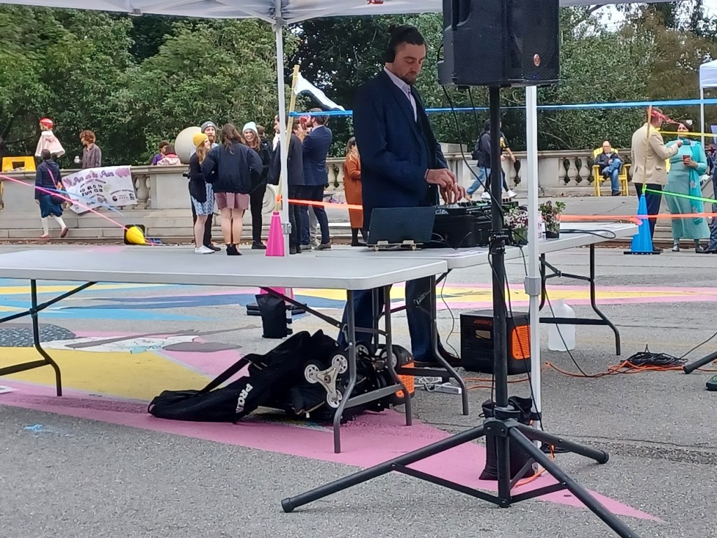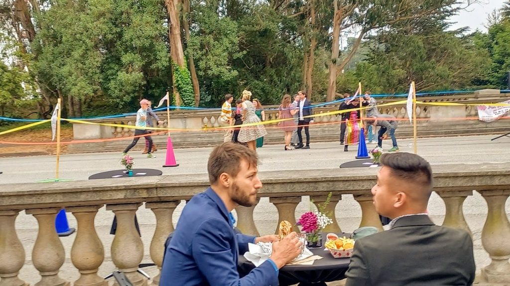 Saturday afternoon on a foggy windswept late afternoon a hardy group of San Franciscans gathered on JFK Promenade (adjacent to the De Young Museum which waged a ferocious battle in opposition to its creation) celebrated the second Prom on the Promenade. There was music, food and good cheer at the event sponsored by Walk SF.