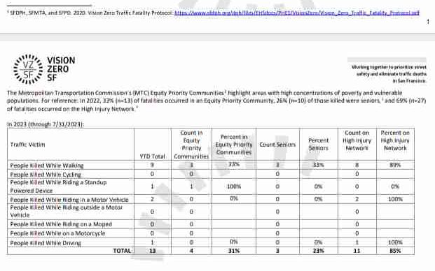 The financial impact to the City caused by accidents, injury and death is something which the entitled motorists refuse to acknowledge. Instead the entitled motorists continue to to assert their right of hegemony over the streets of San Francisco.