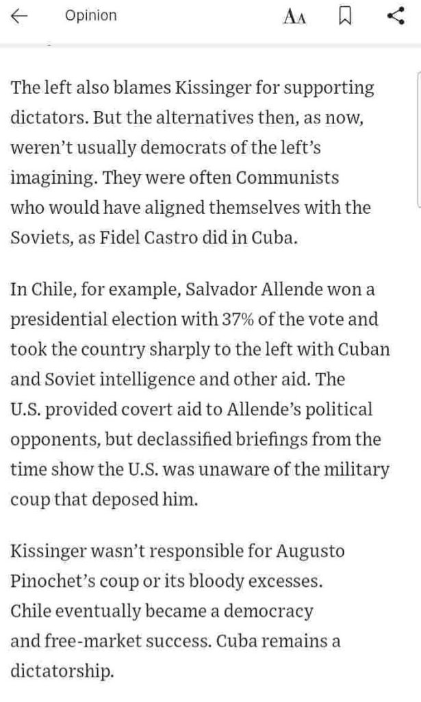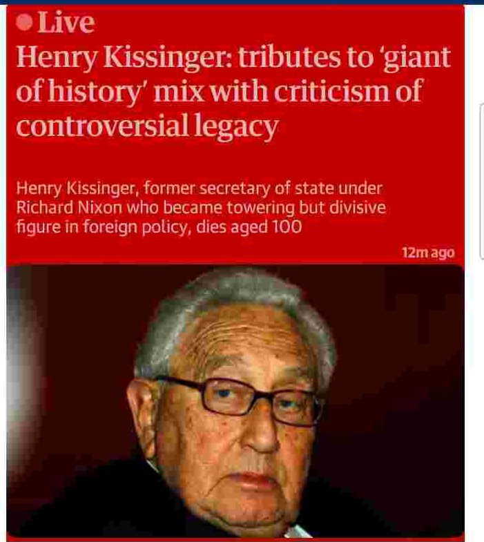 Mainstream media for American capitalist predominance notwithstanding. This is why the obituaries are not universal in lauding Kissinger as a great man.