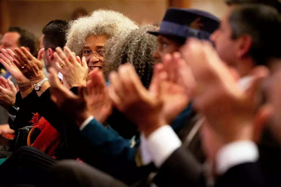 Top photo: DA Chesa Boudin greets a crush of his enthusiastic supporters the evening of his inaugural at Herbst Theater in San Francisco – January 8, 2020.