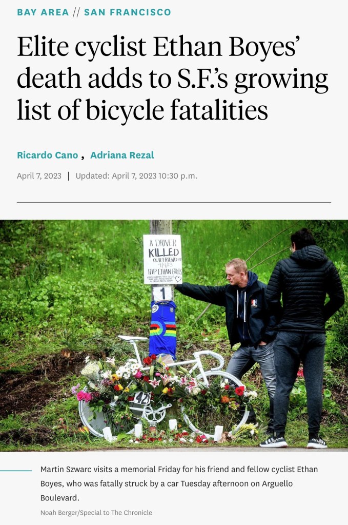 The perp needs to pay the price for taking a life and causing so much grief to the tight knit San Francisco cycling community. Ethan Boyes was only 44 and a beloved figure in the bicycle world.
