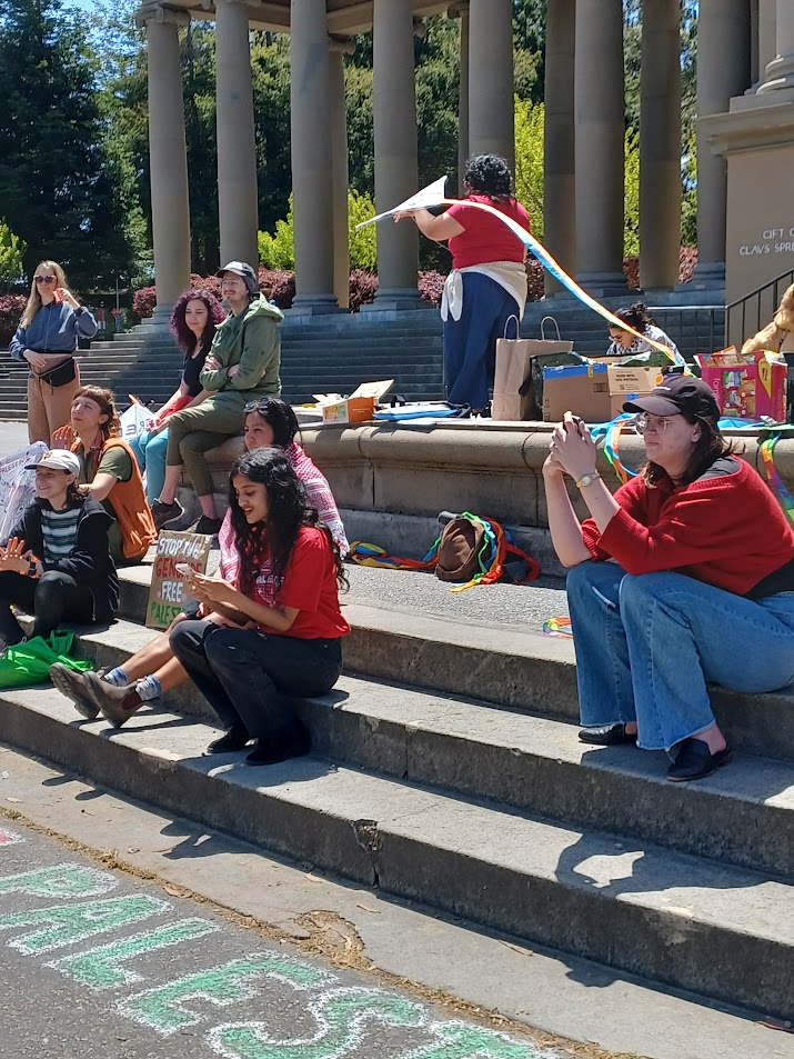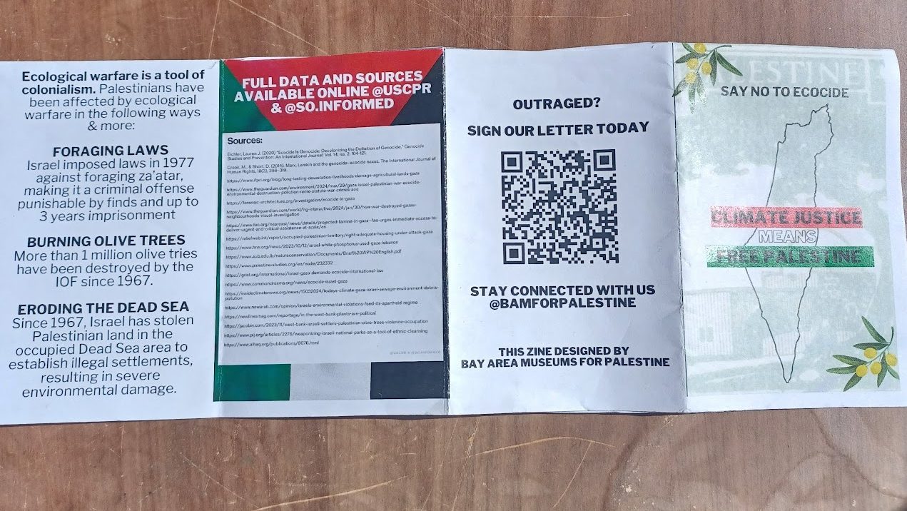 Perhaps the most quiet demonstration was sponsored by Bay Area Museums for Palestine. Many of the participants in the rally at the Music Concourse in Golden Gate Park are employees of the Fine Arts Museums of San Francisco (FAMSF) and the California Academy of Sciences.
