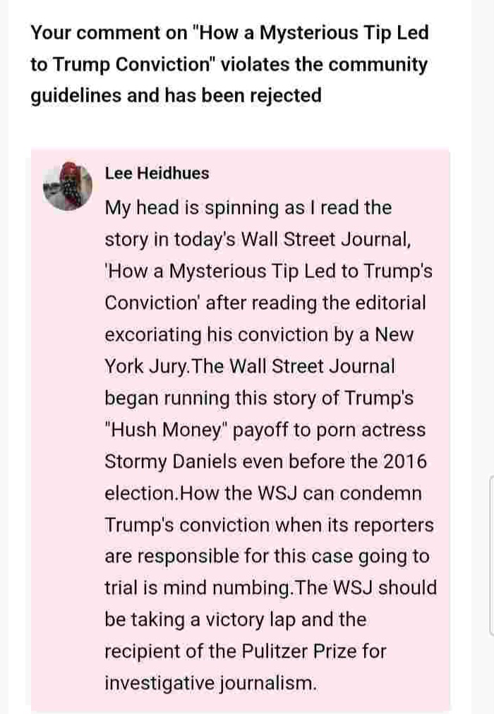 How the WSJ can condemn Trump’s conviction when its reporters are responsible for this case going to trial is mind numbing.