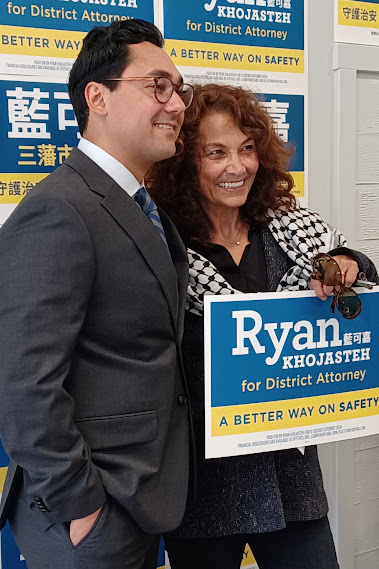 Surrounded by supporters and close knit family members candidate Kojasteh touted his experience as an Assistant DA in Chesa Boudin’s administration. Following Chesa’s recall two years ago, Kojasteh was summarily fired by Brooke Jenkins. The firing occurred as Kojasteh was en route to a wedding. Jenkins called and fired him with no explanation.