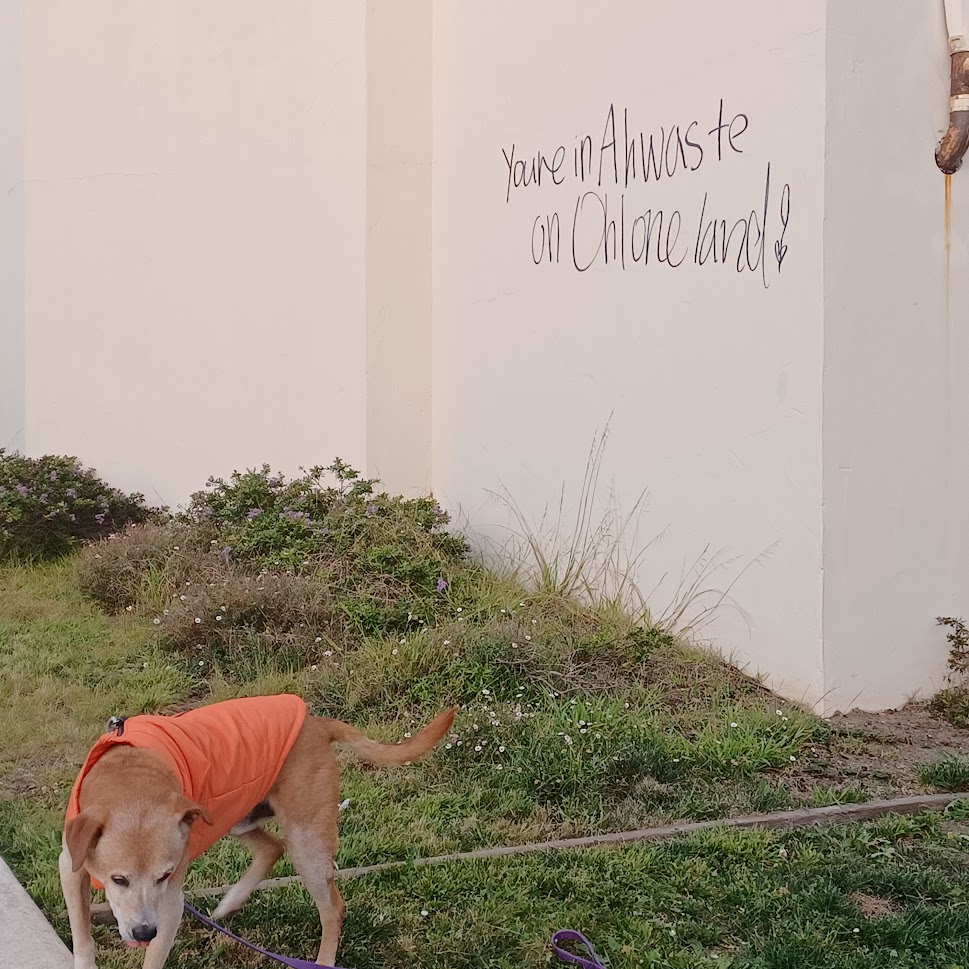During our campaign walk we took a break and met a friendly dog named Koji or “Ocean” who is half poodle and half labrador.