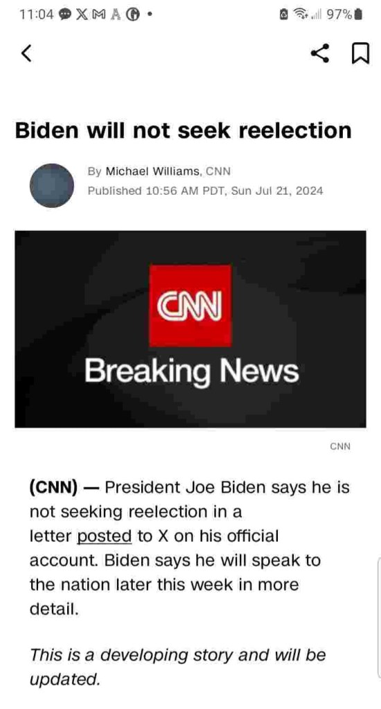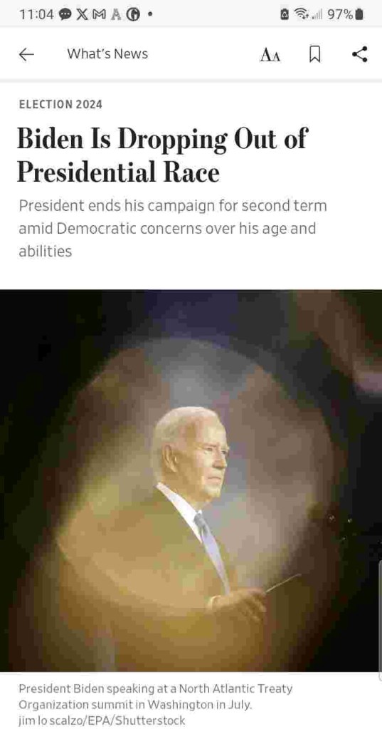 It was 10:57am when I got the first message on my App via The Guardian (of London) that President Biden is dropping out of the presidential race.