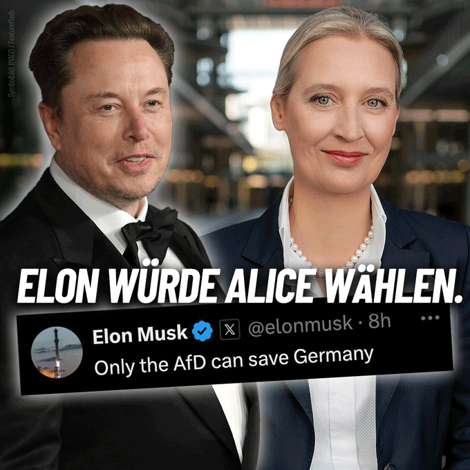 Elon Musk’s favorite German political party. The extremist far right organization currently polling at 19 percent in national polls. Prior to the February 23, 2025 election. Which was called following the collapse of the coalition government in Berlin. None of the German political parties will join in a coalition with the AfD.