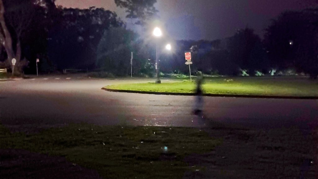 City dwellers had surrendered the space to the dark, a serene and philosophical time when all the people and cars pack up and go home, leaving this natural space to its wildlife and a few unhoused denizens to enjoy.