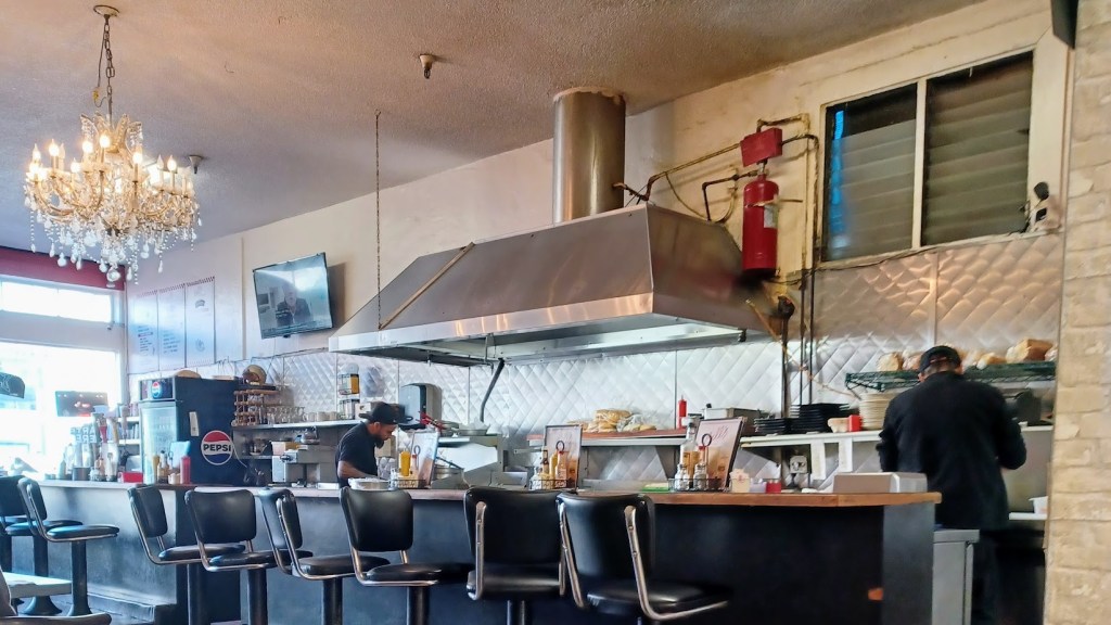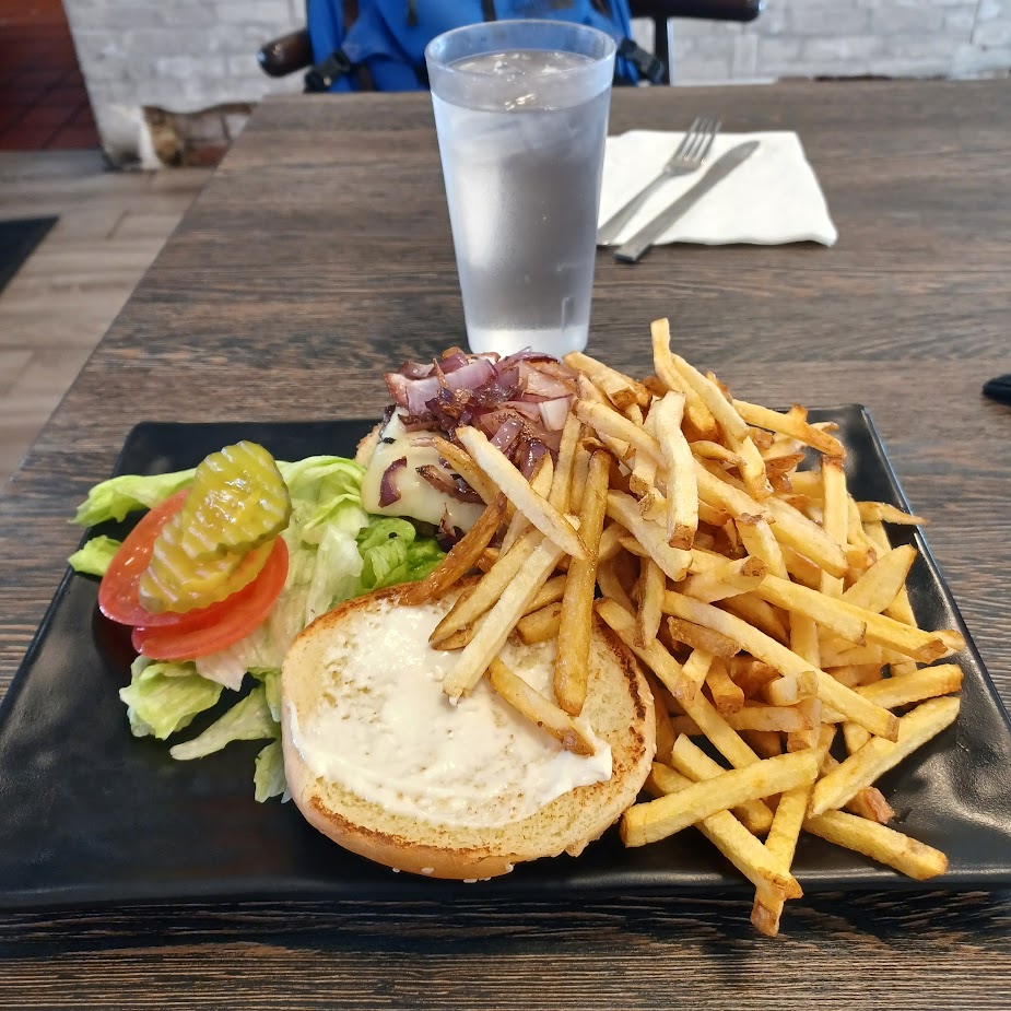 I stepped inside and was greeted by the restaurant co- owner, Wally Jarrar. Checking out the robust menu I was seated at a large table and ordered a cheeseburger and fries.