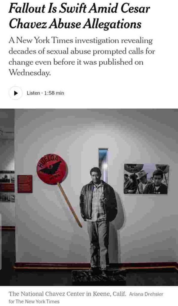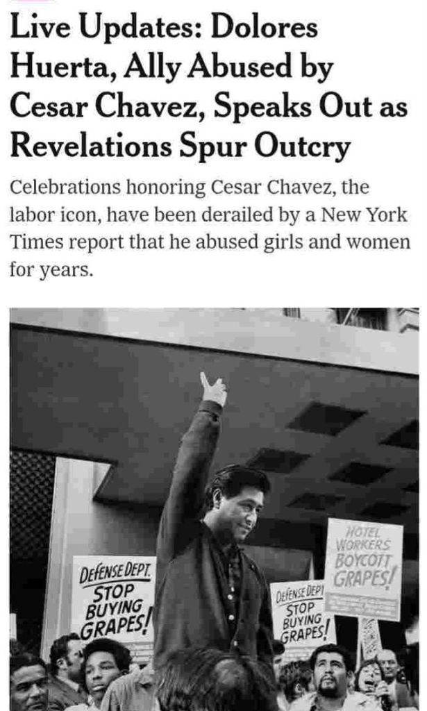 The blogger is shocked and dismayed to read The New York Times and subsequent reports in The San Francisco Chronicle chronicling years of sexual abuse by United Farmworkers icon Cesar Chavez.