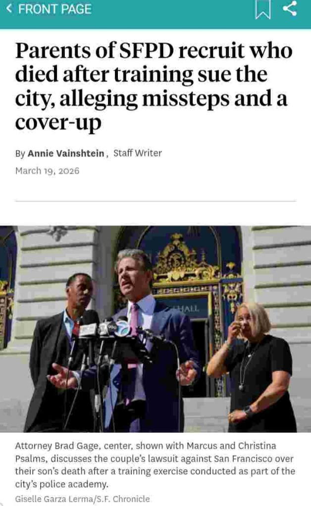 Knowing full well the incident resulting in the death of a SFPD recruit Jon-Marques Psalms in 2025 is an embarrassment to the City and the SFPD. This wrongful death litigation will never go to Trial. The City will pay the grieving family.