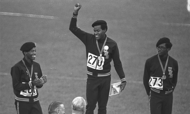 Lee Evans – number 270 shows clenched fist at Mexico City Olympics