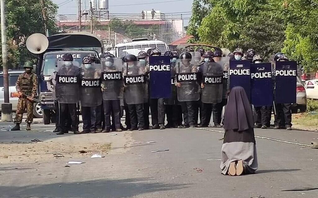 Top photo – During a march to Danville Police Department headquarters, Veronica Benjamin points to where Tyrell Wilson was fatally shot by the same police officer who shot and killed Laudemer Arboleda in November 2018.