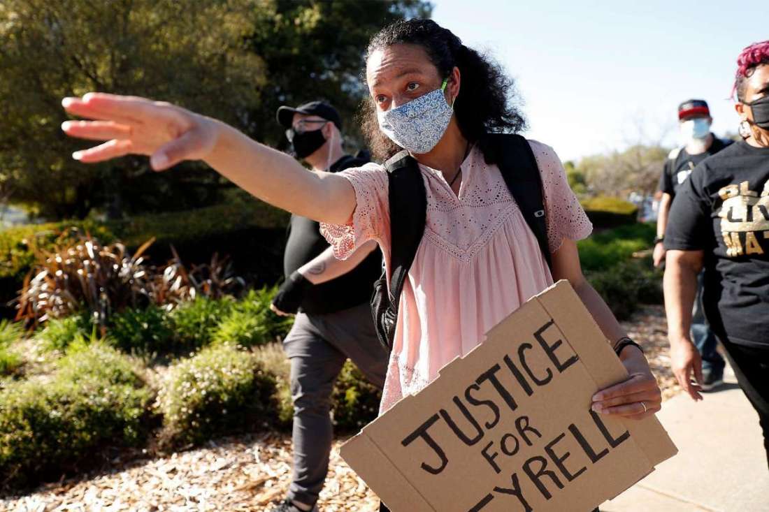 During a march to Danville Police headquarters, Veronica Benjamin leads the family of homeless man, Tyrell Wilson, was shot and killed by the same Danville Police officer who shot and killed Laudemer Arboleda in November 2018. Photographed on Sunday, March 28, 2021, in Danville, Calif.