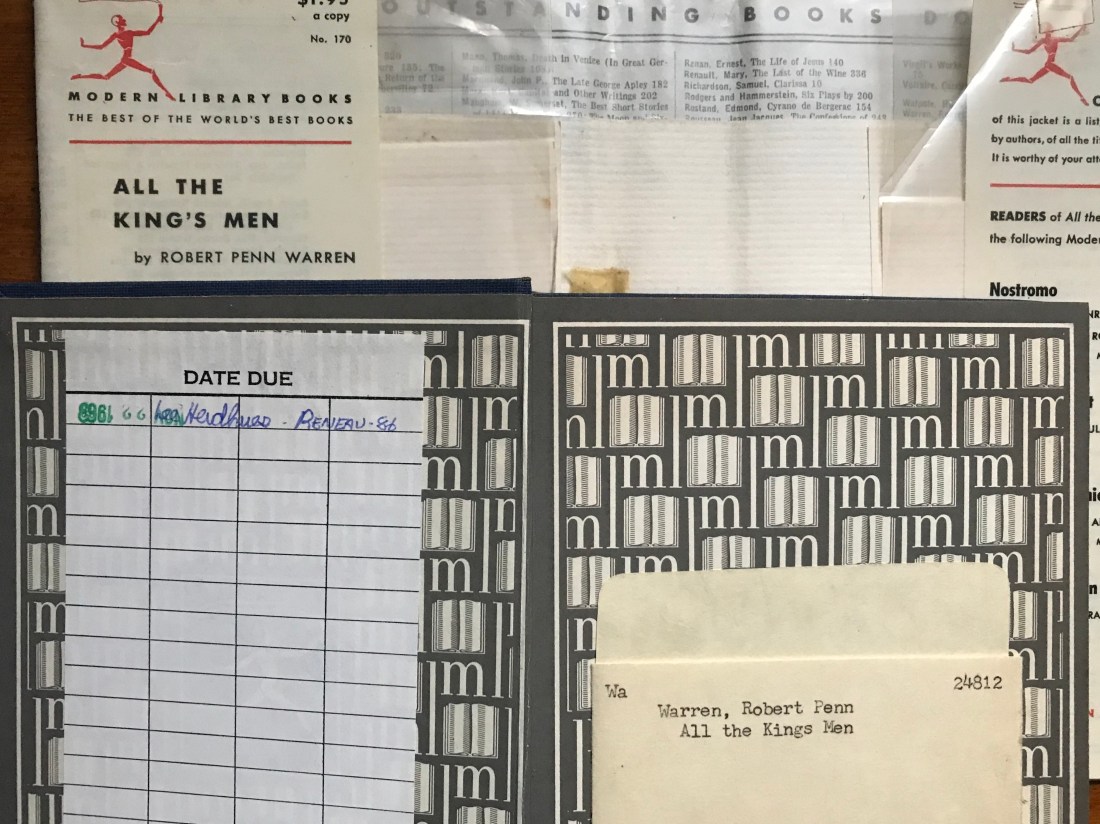 In 1963 I was in high school. I had borrowed “All the King’s Men” from the school library in early November. It’s due date was November 22, 1963.