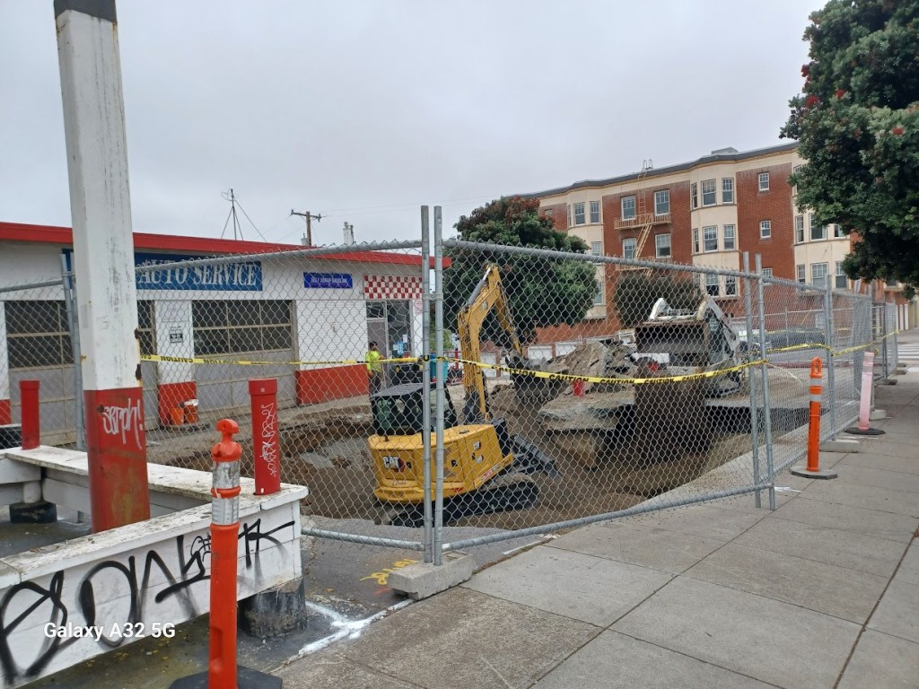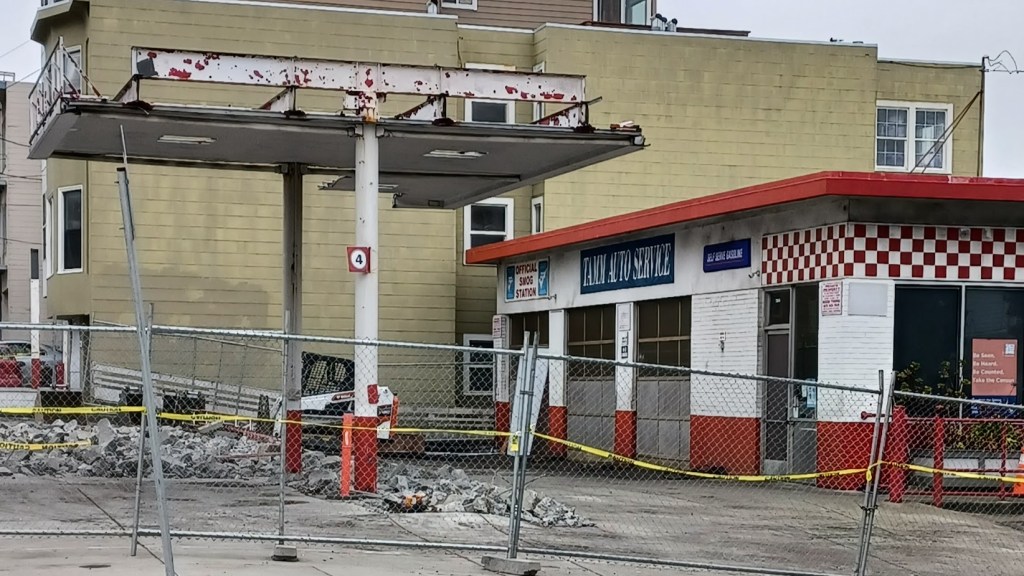 The now shuttered and soon to be completely demolished gas station at 38th Avenue and Geary
