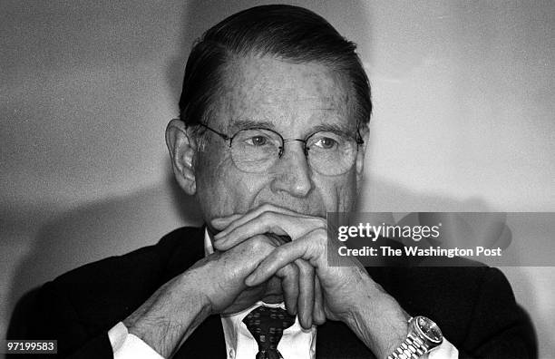 12/02/2002 photograph attorney William Webster, former FBI and CIA director who resigned as chair of the Accounting Oversight Board during a press conference at Baker & McKenzie regarding conclusions reached by the Oversight Board. (Photo by Gerald Martineau/The The Washington Post via Getty Images)