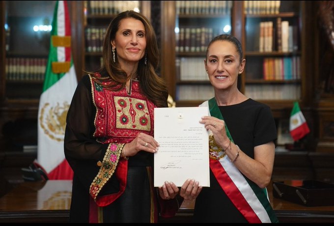 Mexican resident President Sheinbaum has received the Credentials accrediting Nadya Rasheed as Ambassador of Palestine…