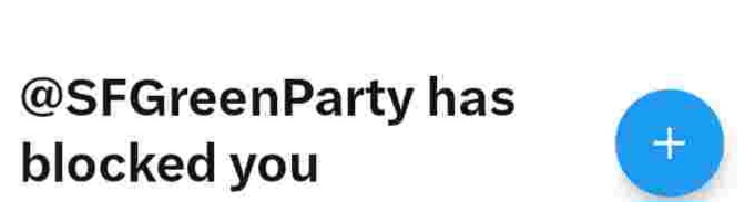 The Green Party San Francisco, which I am a long time member, has “blocked” me on “X” formerly Twitter for questioning the political orthodoxy which infects doctrinaire organizations.