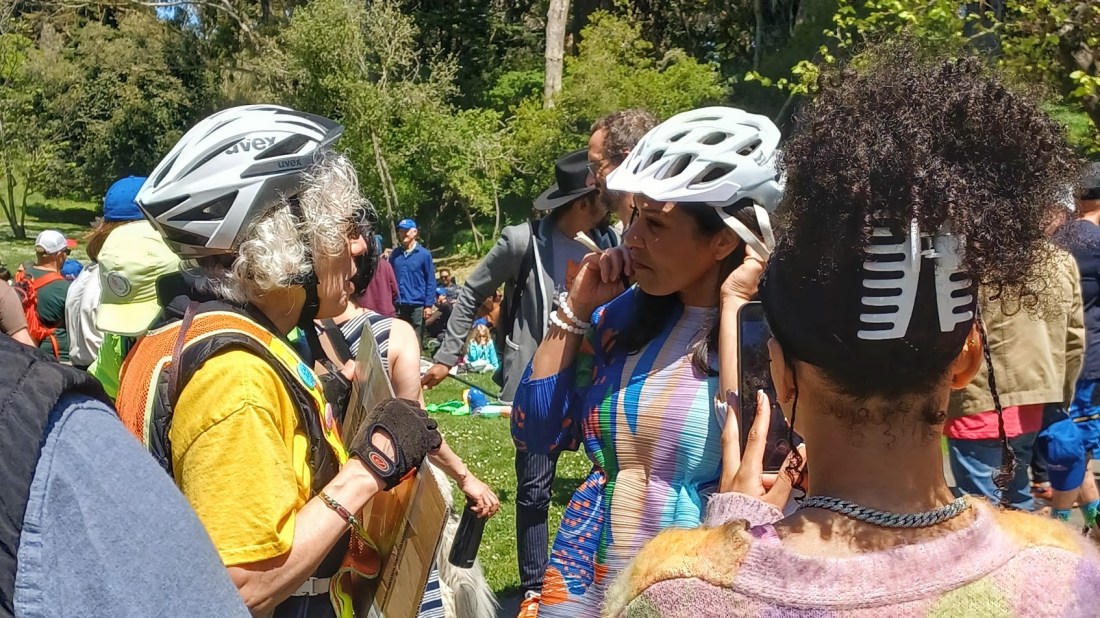 Top photo: Liz Heidhues, a lifelong cyclist and advocate for JFK Promenade engages Mayor London Breed in conversation.