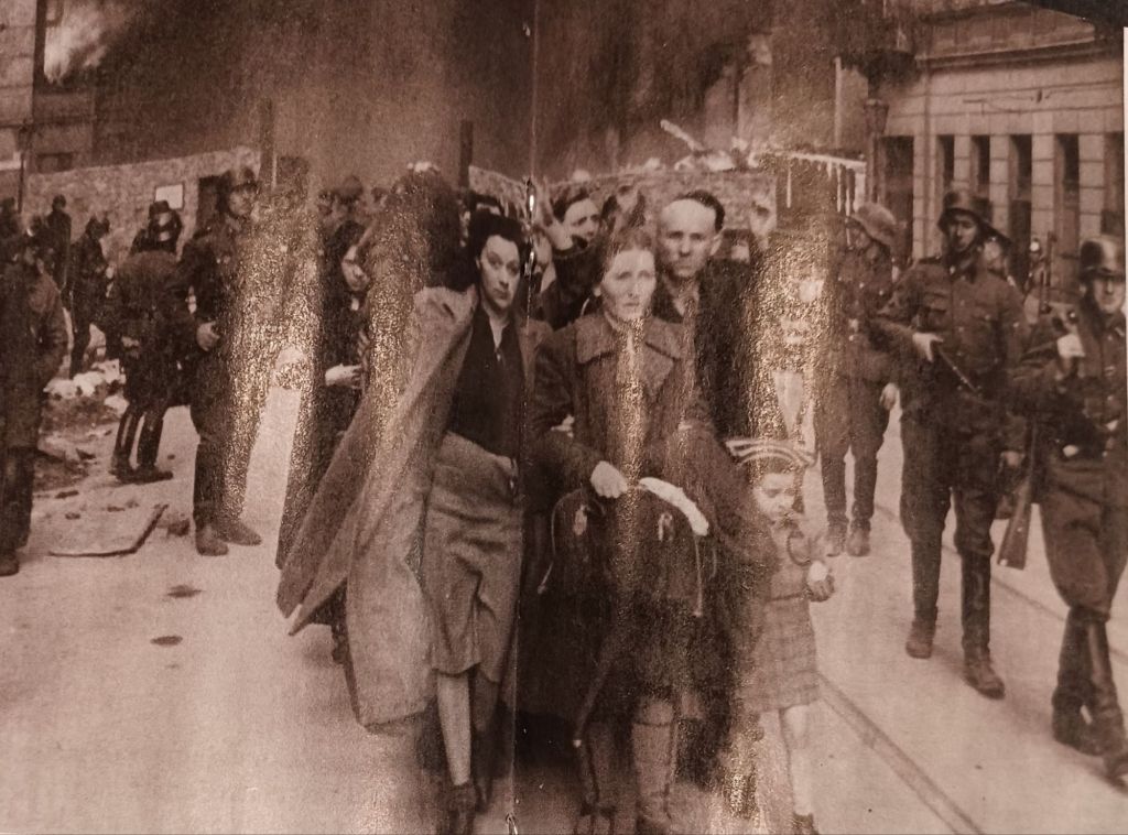 Warsaw, 1943: SS troops bring a group of ✡️ people, including women and children to a railway–station collection point for deportation to Nazi death camps.