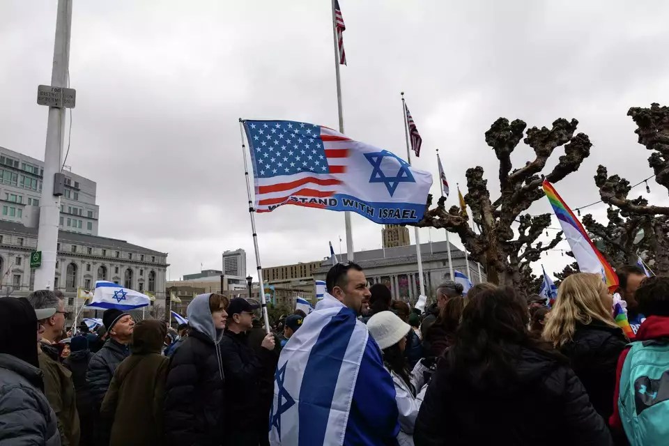 Thousands of Jewish demonstrators and their supporters braved the rain Sunday afternoon at San Francisco’s City Hall to condemn antisemitism, especially in schools and on college campuses across the Bay Area.