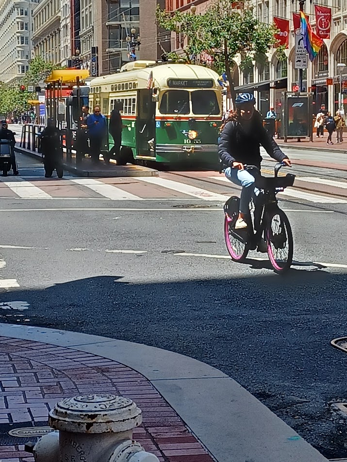 Before catching the Muni 38R bus home in front of the Westin St. Francis Hotel Liz chatted up the longtime Concierge “Andre” at the historic Union Square Building at the corner of Geary and Powell Streets. Liz taught ESL at the Berlitz Language School in this building and explained San Francisco’s vibrant street life just outside their classroom window which enthralled students from all over the world.