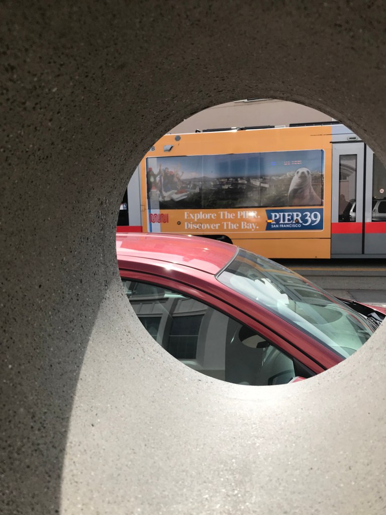 Lee peers through a portal as the Muni Metro rumbles by.Portal to the San Francisco Muni Metro ‘N’ Judah line.