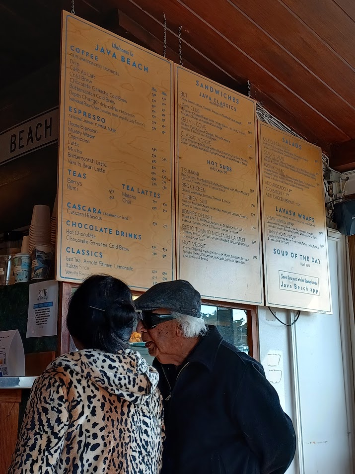 Liz and Lee enjoy their triple decker sandwiches at Java Beach Cafe.