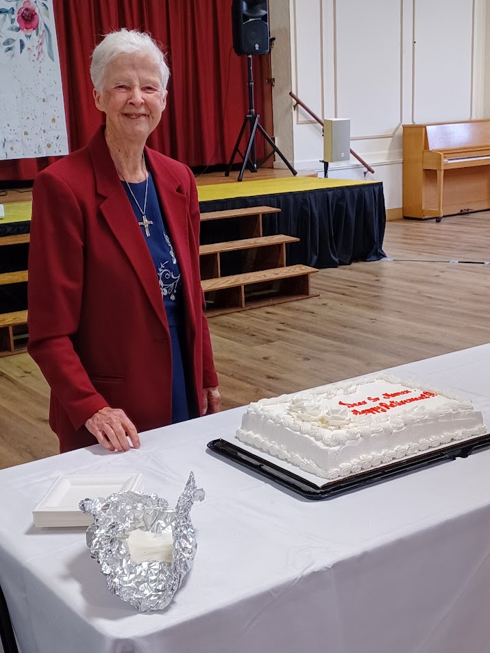 Father Ben asked the approximately one hundred folks at St. Monica’s Parish Hall gathered together to say goodbye to the 90-year-old nun and to thank her for her years of duty and devotion to us – the parishioners of St. Monica-St. Thomas the Apostle Parish, and beyond, the families, the friends, the residents of the Outer Richmond District which the two Catholic churches serve.